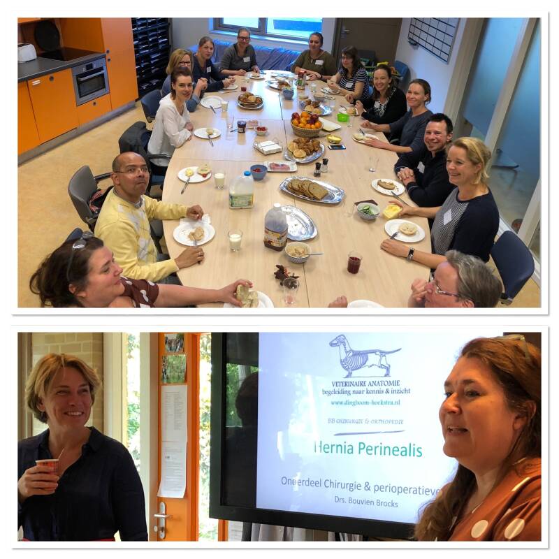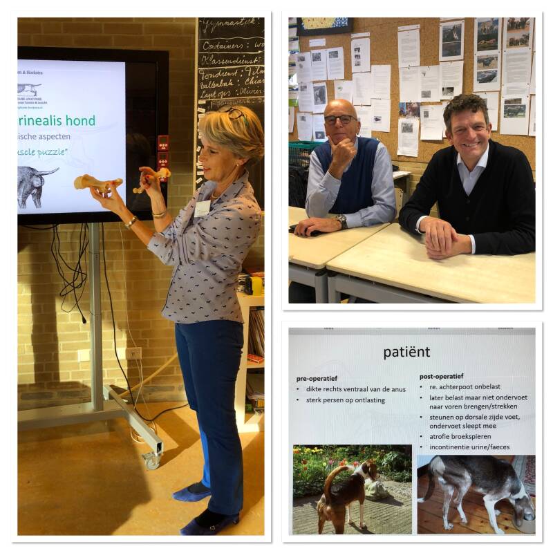 Presentatie anatomie door Tanja Hoekstra-Kraak, in aanwezigheid van Jaques&Bart, baasjes van Basco, onze “hernia perinealis” mascotte.