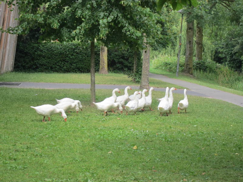 Ingang Oost (dit is de ingang aan de zij-/waterkant, herkenbaar aan de "boomstammen" tegen de gevel). Zie foto & plattegrond hieronder.